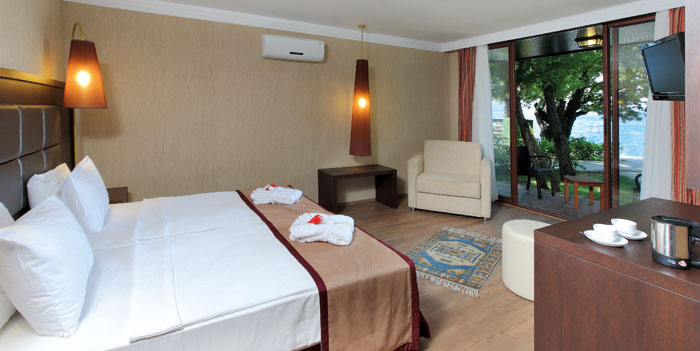 В стаята: DELUX стаи: 32 кв.м., две единични легла или спалня, климатична система, LCD телевизор и сателитна TV, телефон, мини-бар, ел.кана със сет за кафе и чай, сейф за лаптоп, балкон или тераса. Баня с вана, телефон, тропически душ, халат за баня, сешоар. Един частен външен басейн само за луксозни стаи. Стаите са с изглед към морето. Почистване на стаите – ежедневно, смяна на спално бельо и кърпи – два пъти седмично.