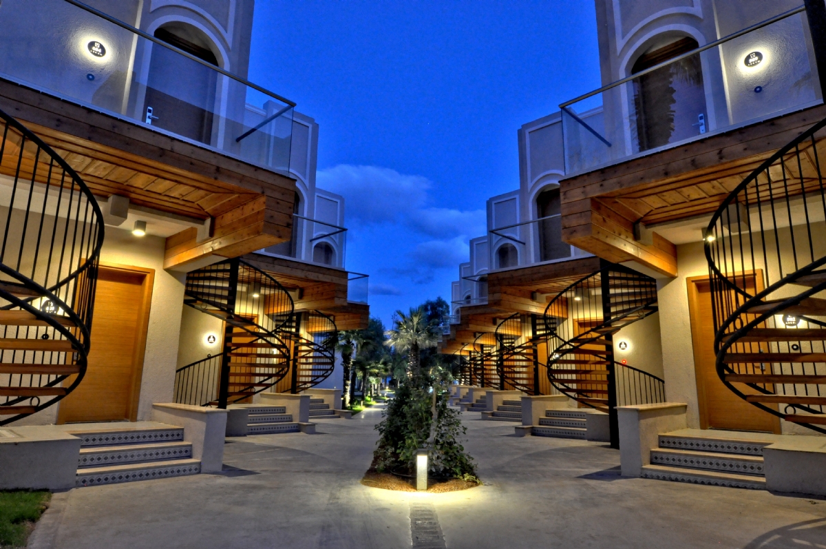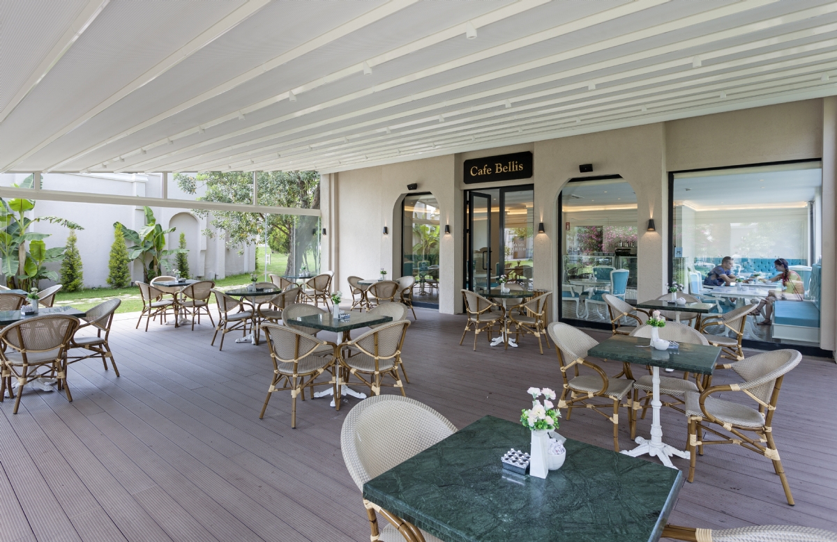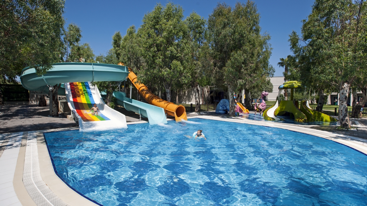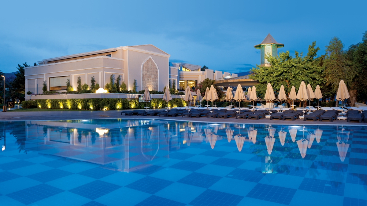 В хотела: общо 304 стаи, включително стаи за хора с увреждания, основен ресторант с закрита и открита част с общ капацитет от 700 гости, 3 а-ла-карт ресторанта (рибен, турски и италиански), 6 бара, диско бар, открит басейн 900m² , открит басейн с водни пързалки, детски басейн 40 m², детски басейн с водни пързалки, детска площадка, мини клуб, Spa център с турска баня и сауна, фитнес център, зала за игри, тенис корт (твърда настилка), игрище за плажен волейбол, игрище за мини футбол, стрелба с лък, въздушна пушка, дартс, билярдни маси, тенис маси, обмяна на валута, търговска част, съоръжения за водни спортове, електронни игри, доктор, пералня, химическо чистене.