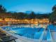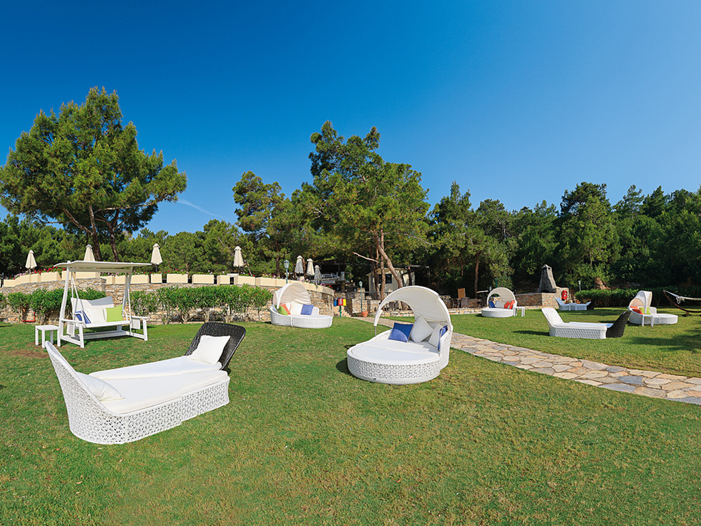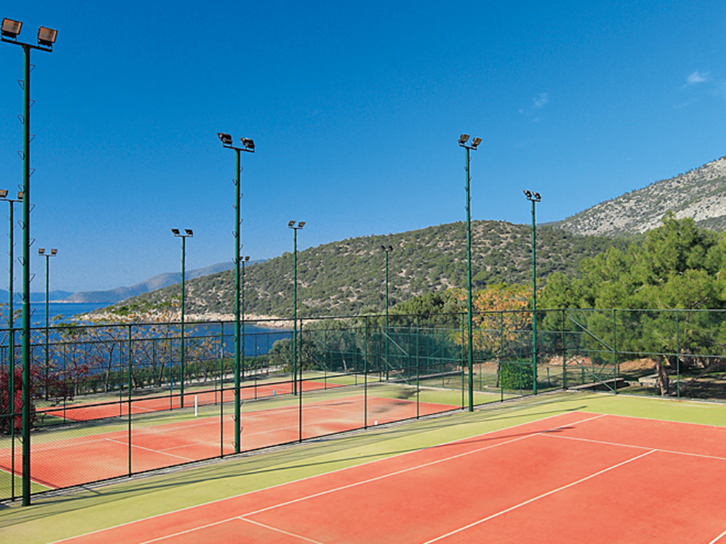 В хотела: хотелът се състои от основна сграда и клубна част и предлага настаняване общо в 288 стаи. 101 стандартни стаи в основната сграда, в клубната част 88 стандартни стаи и 99 фамилни стаи. На разположение на гостите са -  външен и вътрешен басейн, детски басейн, водни пързалки, основен ресторант, а –ла- карт ресторант /1 безплатно посещение за престои от 7 дни/, 3 бара, открита дискотека, конферентна зала, СПА център, турска баня, сауна, стаи за масаж, фитнес зала, център за красота, фризьорски салон, магазин за сувенири, детски кът /открит и закрит/, дневна анимация и амфитеатър за вечерни шоу програми. Условия за спорт -  3 професионални тенис корта, тенис маси, терен за мини футбол с изкуствена трева, водни спортове -  водни ски, джет, банан, кану и водно колело.