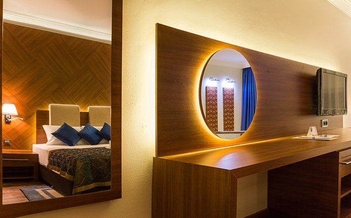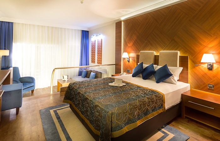 В хотела: общо 352 стаи. В основната сграда - 92 Стандартни стаи (26кв.м, макс. настаняване 3 човека), 52 Джуниор суит (32 кв.м, една голяма стая, мека мебел, макс. настаняване 3+1 човека). Вилите - 82 клубни стаи (макс. настаняване - 3 човека, 28-30кв.м), 86 двустайни фамилни стаи (2 спални без врата, макс. 4 чов., 30 кв.м), 40 тристайни фамилни стаи (хол, 2 спални с врата, макс. настаняване 4+2 или 6 чов., 45 кв.м). Хотелът предлага още: 2 основни ресторанта, 6 а-ла-карт ресторанта (турски, средиземноморски, интернационален, азиатски, италиански и рибен), 6 бара, 2 открити басейна, закрит басейн (през юли и август не работи), конферентна зала, фото студио, бутик, магазини, мини маркет, Spa & Wellness център със сауна, турска баня и фитнес зала, фризьорски салон, ТВ зала, лекарски кабинет, игрище за плажен волейбол, баскетбол, тенис маси, дартс, билярдни маси, мини голф игрище, 3 тенис корта, уиндсърфинг, безмоторни и моторни съоръжения за водни спортове, дневна анимация и вечерни шоу програми, пералня и химическо чистене, паркинг. За децата: детски бюфет (юли и август), детски басейн, детска площадка, мини клуб (4-12 год.), джуниор клуб (12-18 год.), мини зоопарк.
