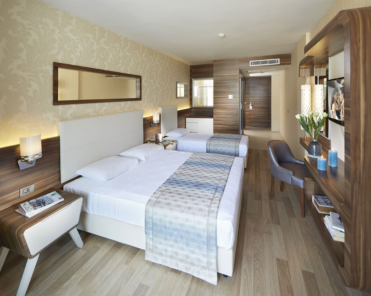 В стаята: VRF централна климатизация, система за електронно заключване, LED HD телевизор, телефон с директна линия, Wi-Fi достъп до интернет, мини хладилник, сейф, балкон. Просторна баня с голяма душ кабина и сешоар. Ежедневно почистване на стаята.