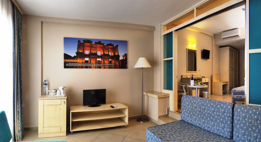 Хотел EPHESIA HOLIDAY BEACH CLUB е разположен на брега на Егейско море, на 7 км от центъра на Кушадасъ, 85 км от летището Аднан Мендерес в Измир. Хотелът се състои от 14 сгради и заема площ от 47.000 км.м.