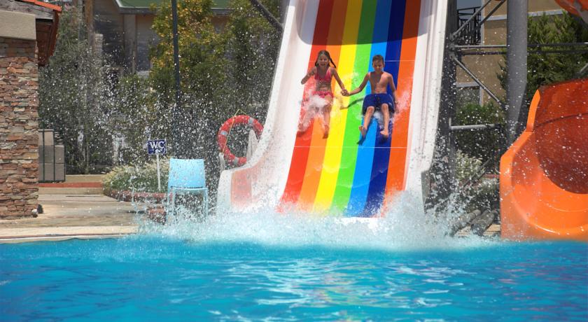 Услуги: Безплатни – турска баня, сауна, фитнес център, мини клуб (4-12 г.), луна парк (4-12 г.), дневна анимация и вечерни шоу програми, аеробика, тенис на маса, тенис на корт (с резервация), мини голф, мини футбол, водни пързалки, безжичен интернет в обществени места, паркинг. Кану и водно колело -15 мин на стая за престоя.