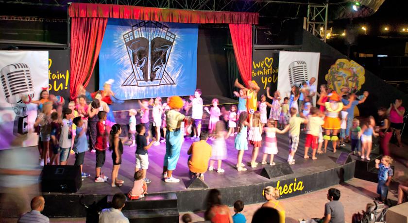 В хотела: общо 410 стаи, основен ресторант с открита и закрита част, 4 а-ла-карт ресторанта (рибен, италиански, китайски, турски), 5 открити басейна, 3 детски басейна, водни пързалки, детска площадка, луна парк и мини клуб за деца от 4-12 години, търговска част (бижутерия, бутик, мини маркет, магазин за кожени изделия, фото студио), зала за игри (билярд, PlayStation 3, въздушен хокей, интернет и др.), СПА център с турска баня, сауна, фитнес зала, тенис корт, тенис маси, игрище за плажен волейбол, мини футбол, съоръжения за водни спортове, паркинг