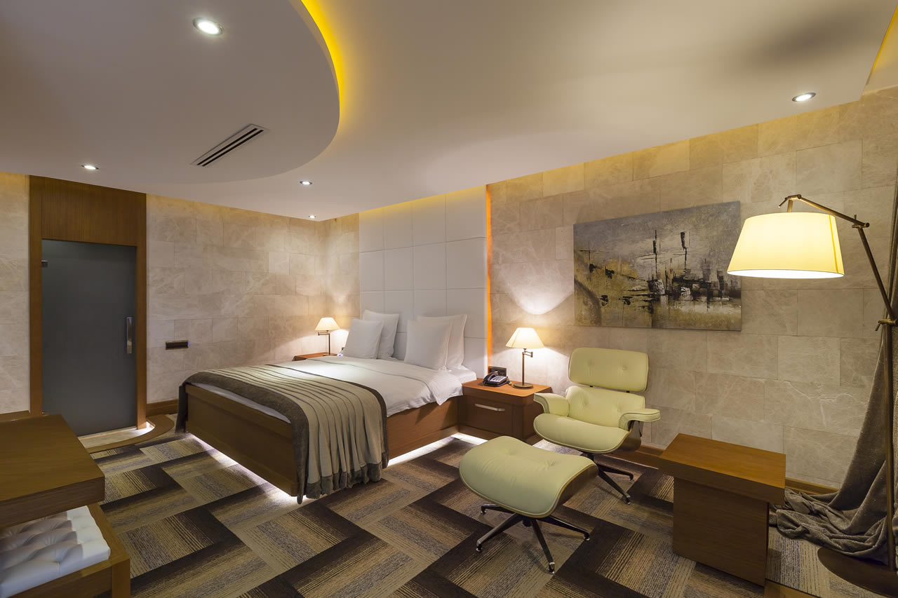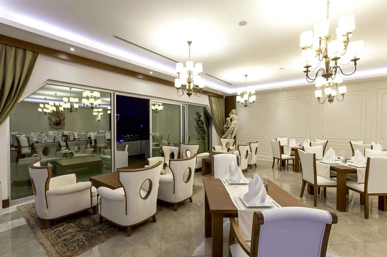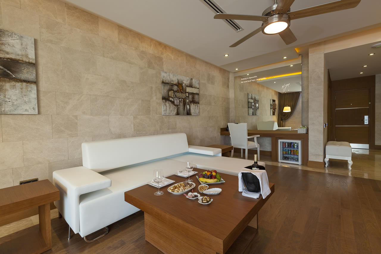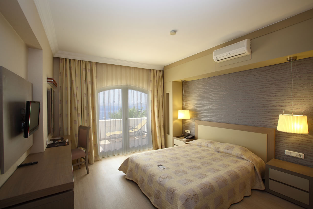 В стаята: всички стаи са комфортно обзаведени и разполагат с климатична система, LCD телевизор със сателитни канали, музика, телефон с директно международно избиране, безплатен сейф, мини бар, балкон или тераса, баня с душ, сешоар. Ежедневно почистване на стаите, смяна на спално бельо -3 пъти седмично, смяна на кърпи – всеки ден.