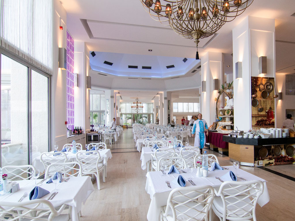 ***А-ла-карт ресторанти /италиански, рибен, китайски, турски/ : 19:00 – 22:00, работят 6 дни в седмицата, за престои от 7 дни, едно посещение безплатно с предварителна резервация. Напитките се заплащат.