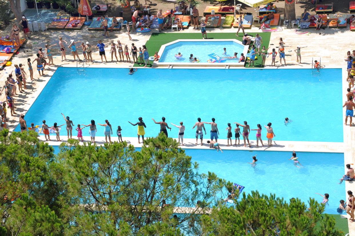 На територията на хотела: Хотелът разполага с 385 стаи, от които 383 стандартни стаи, 2 ресторанта, 2 бара, 2 басейна с детска секция, TВ зала, конферентна зала, търговски център, мини клуб, водна пързалка, детска площадка, анимация, дискотека, фитнес, аеробика, тенис на маса, билярд, дартс, мини голф, баскетбол, мини футбол, плажен волейбол, тенис корт, водни спортове (срещу заплащане), турска баня, сауна, масаж.