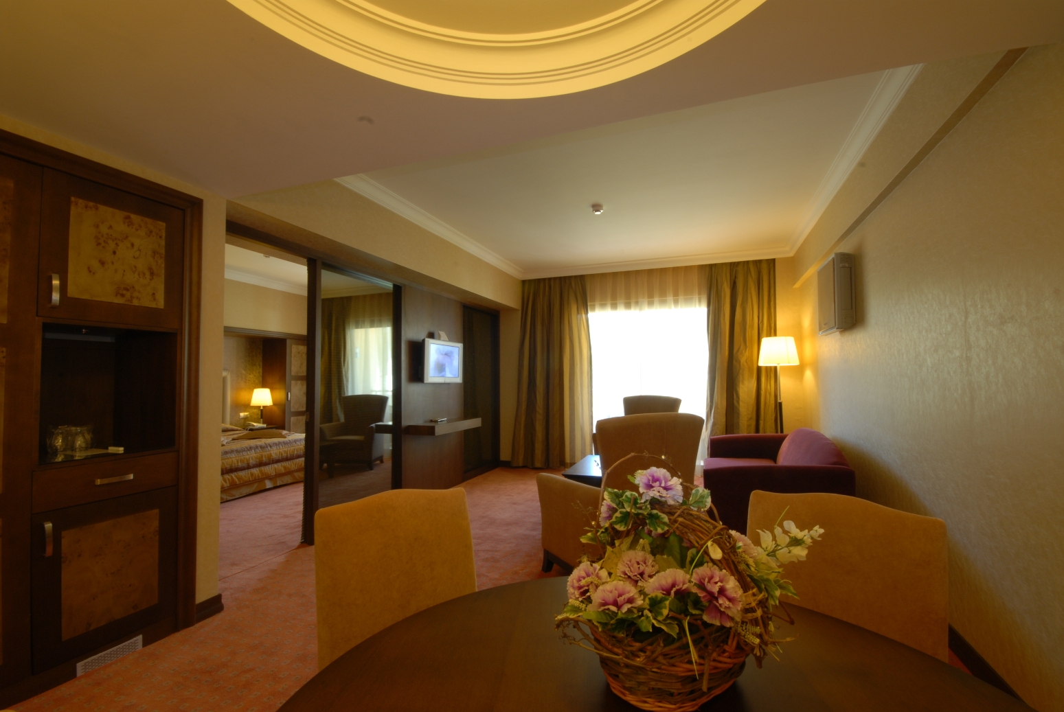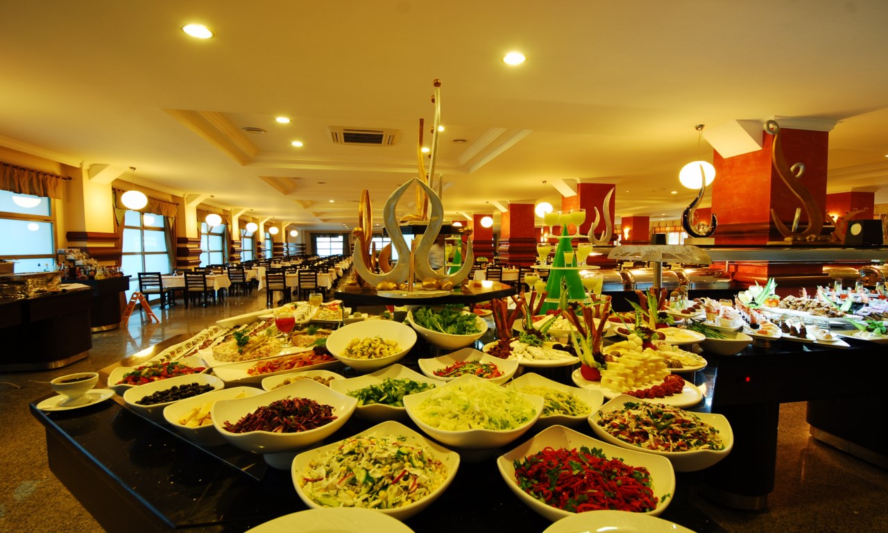 В хотела: 271 стаи, от които3 стаи за хора с увреждания, 4 апартамента (холи спалня без врата, джакузи, максимум 2+2 човека, 50 кв.м) и 2 кралски апартамента (хол и спалня с врата, джакузи, максимум 2+2 човека, 50 кв.м)., основен ресторант с 580 места, а-ла-карт ресторант (интернационална кухня), кафе-сладкарница, 4 бара, витамин бар, дискотека, открит басейн, 3 водни пързалки, закрит басейн, SPA-център, турска баня, фитнес център, парна баня, сауна, джакузи, търговска зона (мини маркет, фризьорски салон, фото-студио, бижутерия, бутик, автомобили под наем), конферентна зала със 700 места, лекар, химическо чистене, закрит и открит паркинг, Интернет, билярдни маси, Play Station зала, дневна анимация и вечерни шоу програми. За децата: детски бюфет, детски басейн, мини-клуб (4–11г.), детска площадка, почасово гледане на деца.
