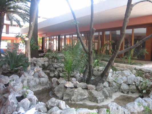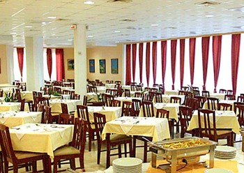 На разположение на гостите са: ресторант с тераса с 500 места, открит бар на терасата, нощен бар, открит басейн, детски басейн (басейните са с морска вода, която се сменя всеки ден и безплатни шезлонги и чадъри около тях), игрище за волейбол, баскетболно игрище, тенис корт и мини голф (по предварителна заявка).
