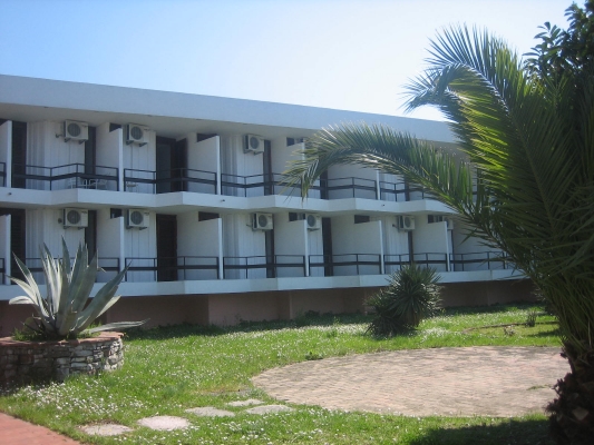 Хотелът се състои от 3 корпуса, с общ леглови капацитет 280 легла. Нашите туристи се настаняват в корпуса, който е на 1-ва линия и е непосредствено до морето.