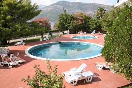 Хотелът се намира на 1,5 км. от центъра на курорта, на тихо и спокойно място в паркова зона със средиземноморска растителност, на брега на морето в залива Бока Которска-един от най-красивите заливи в света.