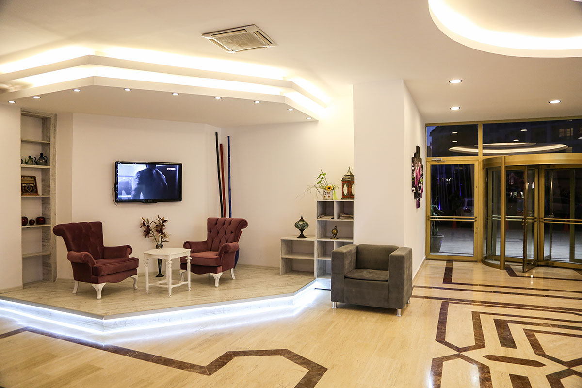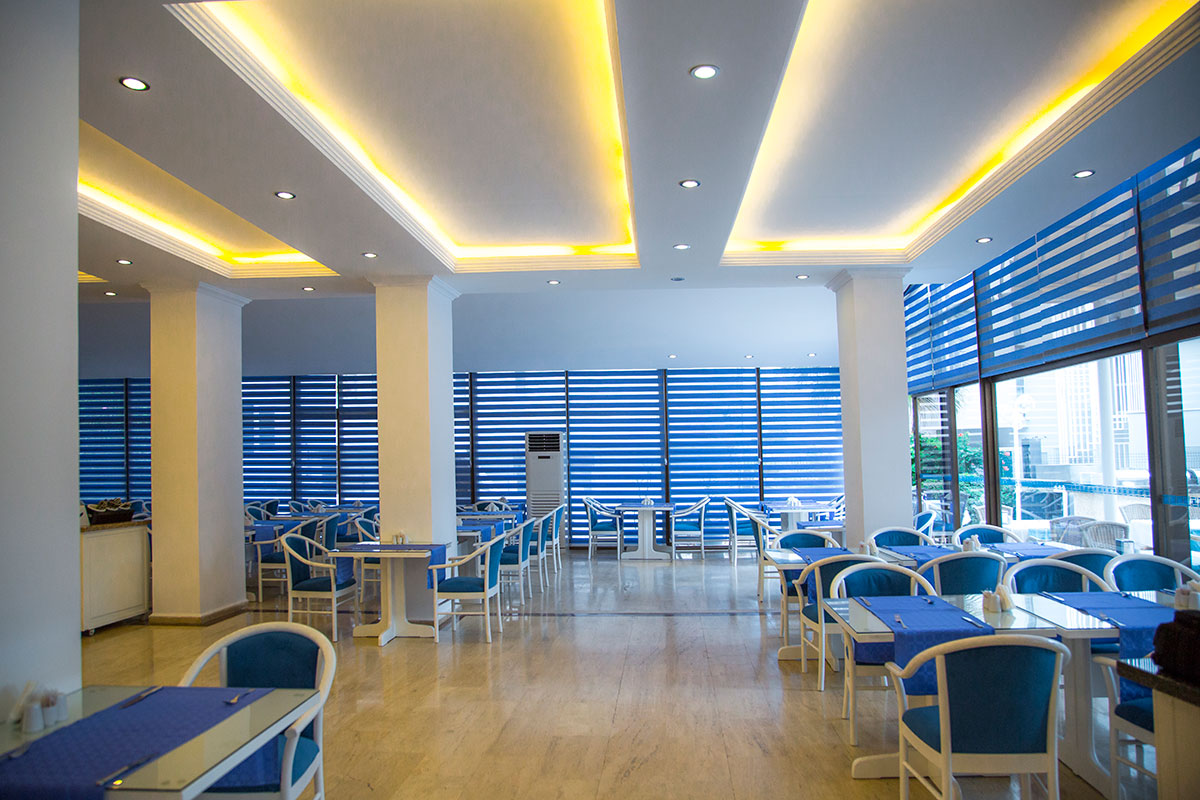 В хотела: 120 стаи, 2 основни ресторанта, 8 бара, сладкарница, открит басейн, детски басейн, детска площадка, фитнес център, TV кът, турска баня, сауна, билярдни маси, тенис маси, джаги, интернет, лекар на повикване, анимация, паркинг.