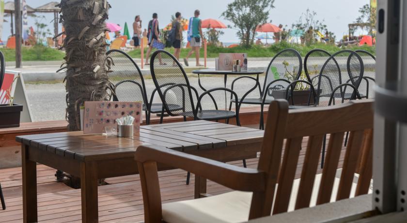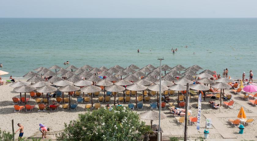 плажа: пясък и се предлагат, шезлонги, напитки и лека храна със сервиз от хотела.