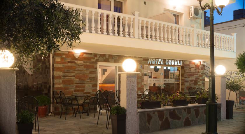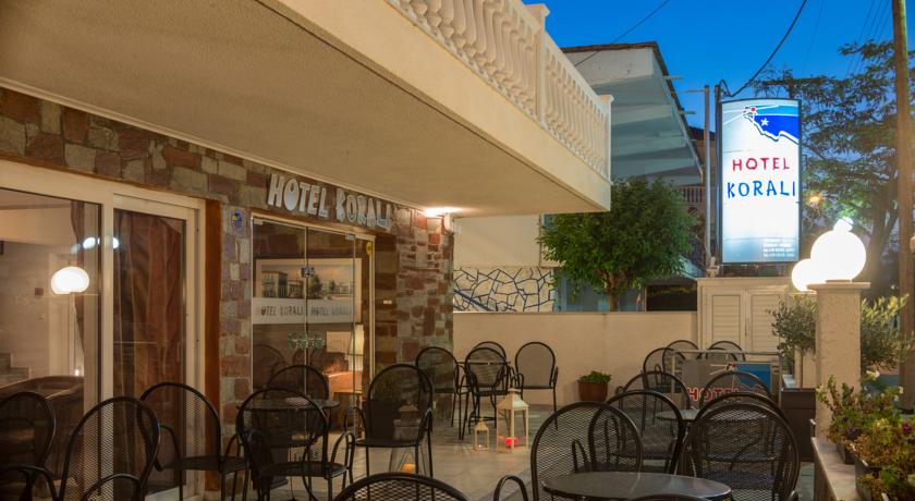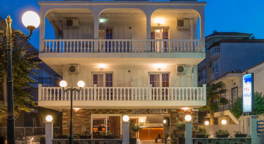 Хотел KORALI е cамо на 20 метра от плажа на Катерини Паралия, на 6 километра от гр. Катерини и на 68 километра от Солун и на 30 километра от Планината Олимп. В близост до хотела има търговски център и няколко бара и нощни клубове. Този семеен хотел разполага с ресторант, бар и предлага безплатен достъп до Wi-Fi интернет и паркинг в базата на хотела.