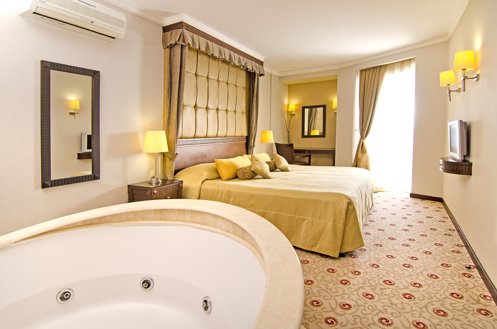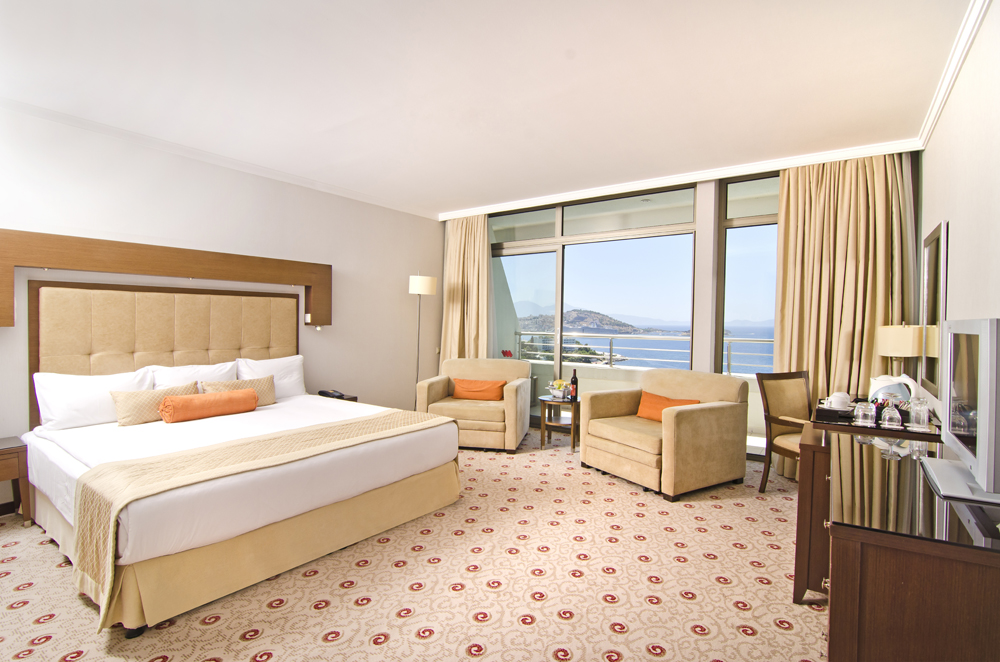 Настаняване : Всички стаи в хотел Korumar Deluxe са с излаз на самостоятелни мебелирани балкони с морски изглед. Стаите са оборудвани със сателитна телевизия, уединена зона за сядане и самостоятелна баня с душ зона или вана.