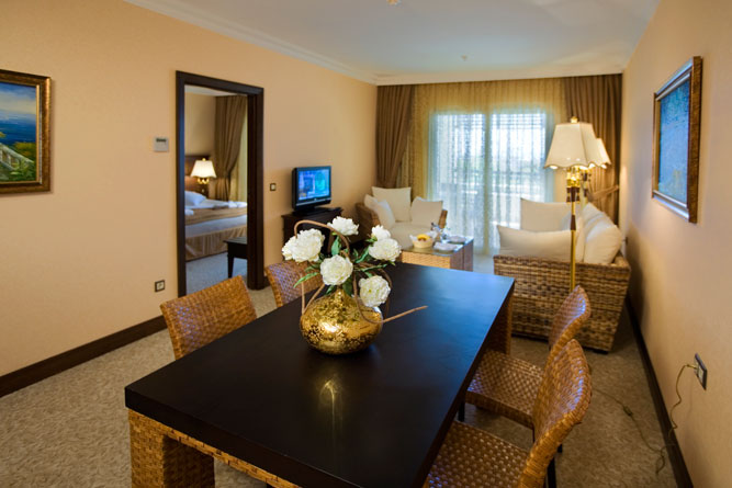 В стаята: климатик, мини бартелевизор със сателитни канали, телефон, сейф (платено), баня с душ/вана, WC, сешоар, балкон. Всички стаи са със изглед към градината.