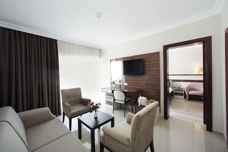 В стаята: климатик, мини бар, LCDтелевизор със сателитни канали, телефон, сейф, пожарен детектор, интернет и балкон. Баня с вана или душ, сешоар и телефон. Смяна на спално бельо - три пъти седмично; почистване –всеки ден.