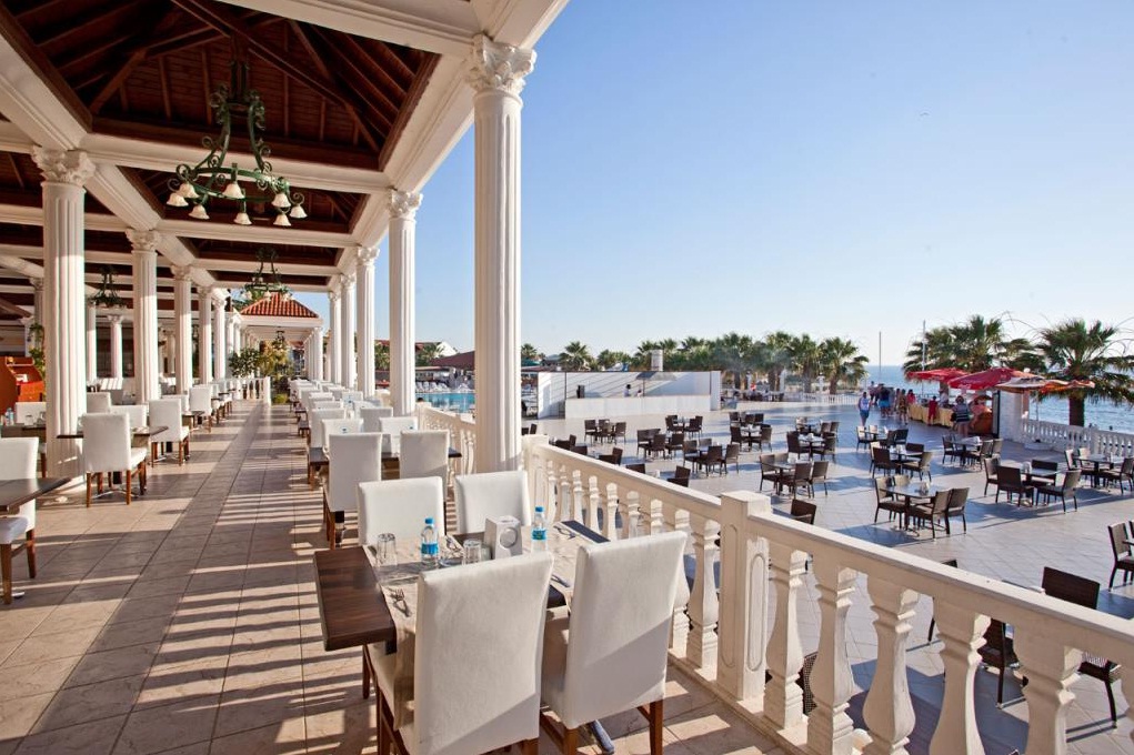 На територията на хотела:  Оновен ресторант, 3 а- ла- карт ресторанта (с предварителна резервация), 3 бара, дискотека, 2 открити басейна, детски басейн,воднa пързалкa, детска площадка, мини клуб (4–12 г.), амфитеатър, магазини, СПА център, сауна, турска баня, фитнес, аеробика, плажен волейбол, мини футбол, тенис корт, тенис на маса, дартс, мини голф, анимационна програма, музика на живо, интернет (на лоби), химическо чистене, обмяна на валута, конферентнa залa, паркинг.