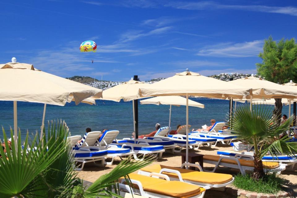 Плаж: собствен, пясък/чакъл, с дължина 250 м. Чадъри, шезлонги, матраци на плажа и на басейна – безплатно. Плажни кърпи – срещу депозит на рецепцията.