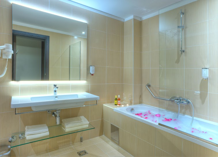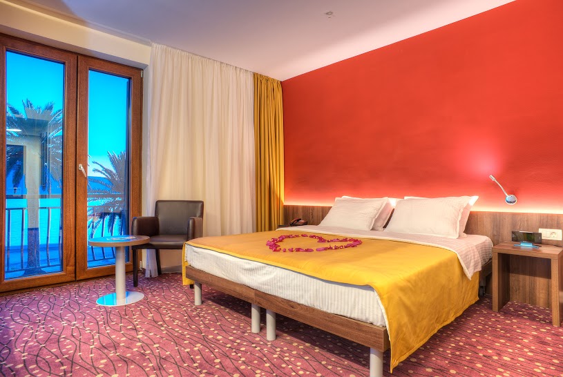 В стаята: климатик, отопление, LCD TV, директен телефон, WiFi интернет, мини бар, сейф, баня с WC, душ, сешоар. Бебешко легло при поискване.