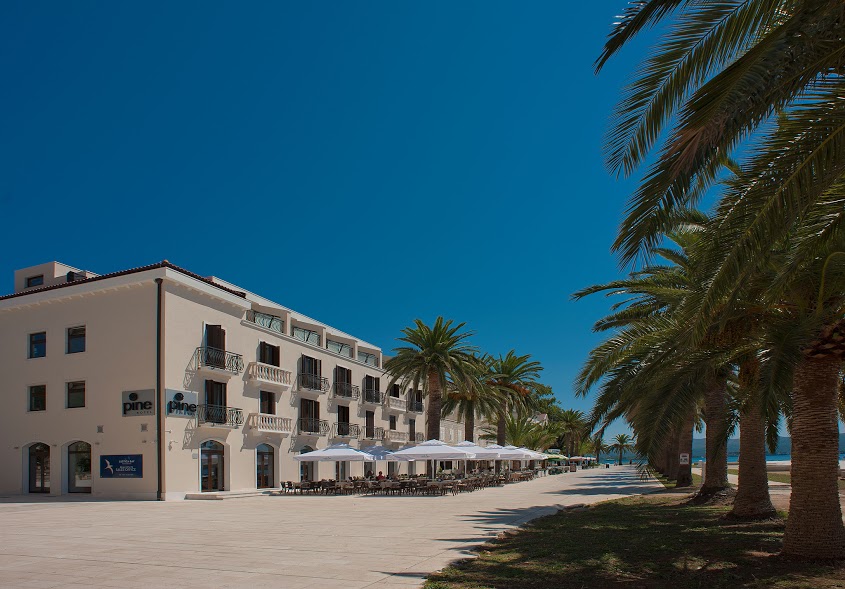 Хотел PINE се намира само на няколко крачки от плажа, в пешеходната зона в центъра на град Тиват, в непосредствена близост до най-луксозното яхтено пристанище "PORTO MONTENEGRO".  Летище Тиват е на 3 километра. Изцяло реновиран и отваря врати през м. Юли 2014 г.