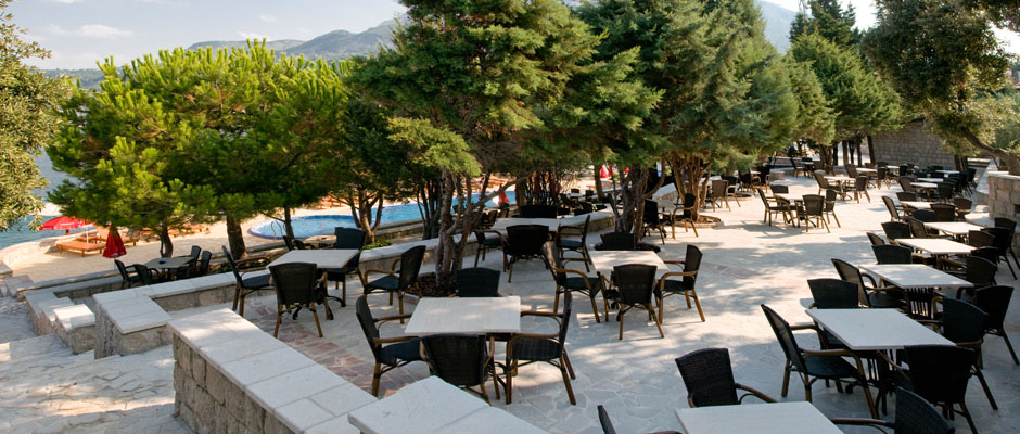 Ресторантът на хотелски комплекс Ruza Vjetrova Resort поднася средиземноморски специалитети на шведска маса. Тук Ви очаква и тераса с прекрасен морски изглед.
