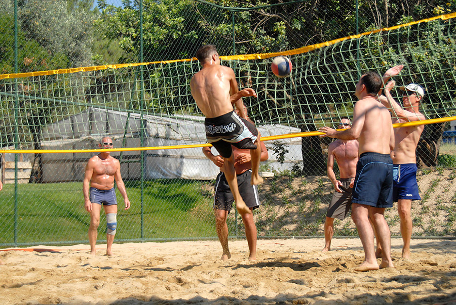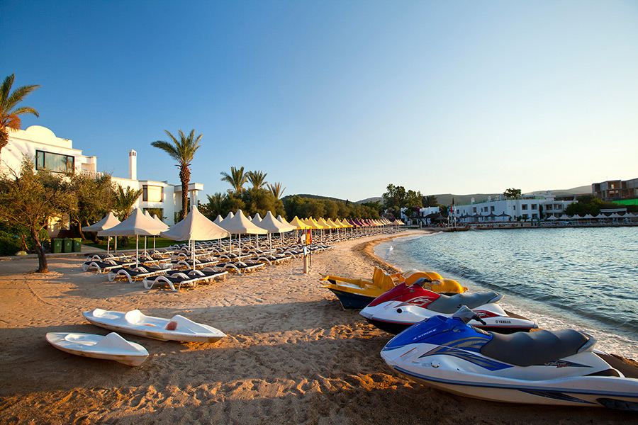 Плаж: собствен, пясък и платформа. Чадъри, шезлонги, матраци, плажни кърпи – безплатно.