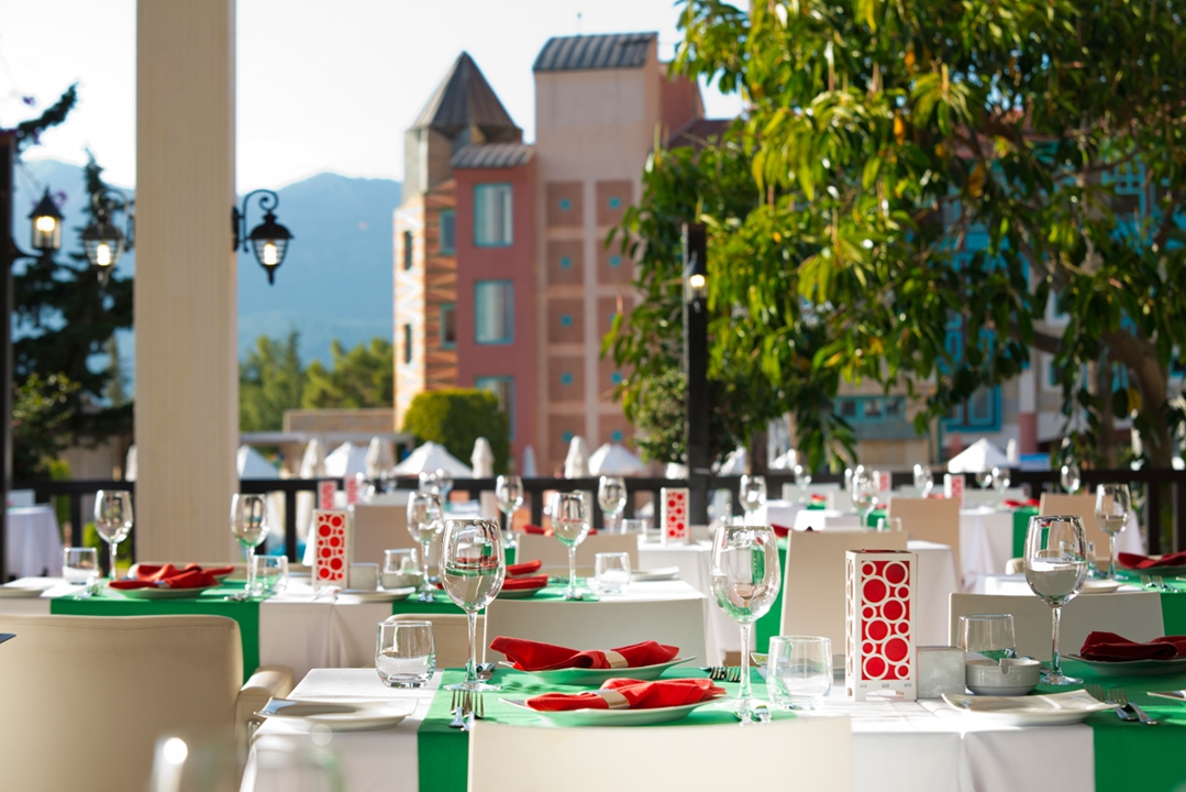 База изхранване: ULTRA ALL INCLUSIVE 24 часа – закуска, обяд, вечеря, междинни хранения и закуски, безалкохолни и алкохолни напитки местно производство и избрани от ръководството на хотела вносни напитки. Изхранване на блок маса.