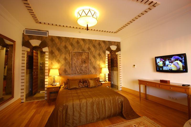 В хотела: хотелският комплекс предлага настаняване в 76 апартамента и на разположение на гостите са - основен ресторант, 6 a- la-carte ресторанта /международен, италиански, диетичен, рибен, турски – с предварителна разарвация, безплатно; гръцки – с предварителна резервация- платен/, диетично меню, вегетарианско меню, детско меню, 5 бара, 3 открити басейна, 2 закрити басейна /с подгряване/, детски басейн, СПА и уелнес център, турска VIP-баня, салони за масаж, кинезитерапия, джакузи, фризьорски салон, 4 конферентни зали, библиотека, бюро за обмяна на валута, търговска част с магазини,