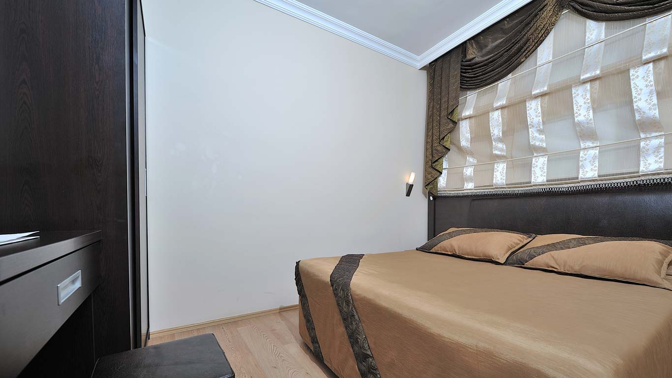 В стаята: климатик, интернет, телефон, телевизор със сателитни канали, минибар, сейф /такса 2 € на ден/ и балкон. Баня с душ, сешоар и безплатни тоалетни принадлежности. Стандартна стая - 20-25 кв.м., фамилна стая - 40 кв.м.