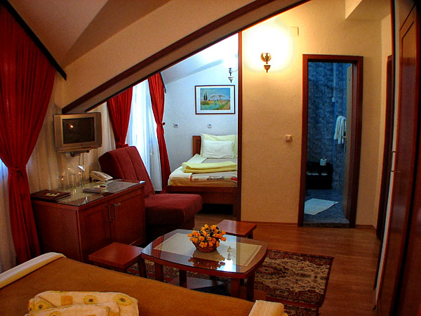 Хотелът разполага с: основен ресторант за закуска и вечеря на блок маса, механа-битов ресторант, конферентна зала, безжичен и LANинтернет, паркинг (охраняван 24 часа), медицинска помощ (24 часа), рум сървиз (8 – 22 ч.), пералня.