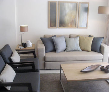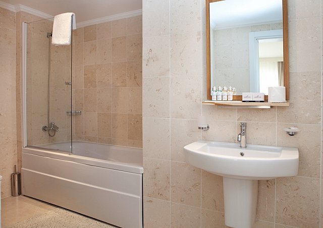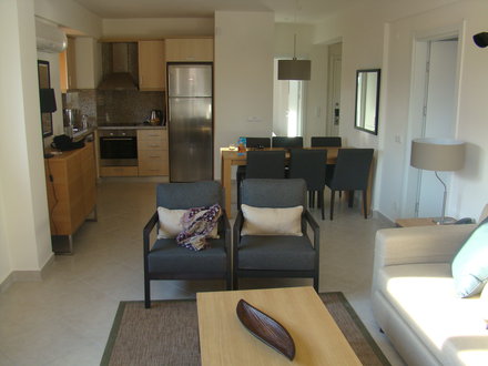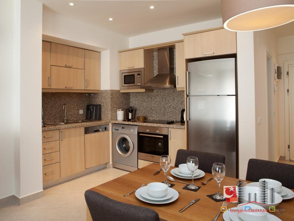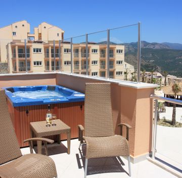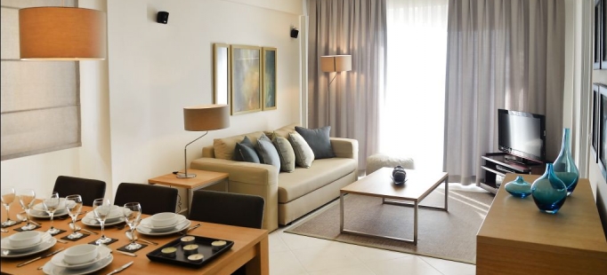 В стаята: Всички апартаменти са климатизирани, оборудвани със електронен сейф, телевизор с кабелна телевизия и DVD плейър, CD плеър и мека мебел. Апартаментите разполагат и с напълно оборудвана кухня - хладилник, миялна машина, печка, маса със столове и пералня машина. Санитарните възли разполагат с вана и сешоар. Всички апартаменти имат балкон с маса и столове. Почистване на стаите - всеки ден, смяна на спалното бельо – 3 пъти в седмицата, смяна на хавлиите – всеки ден.