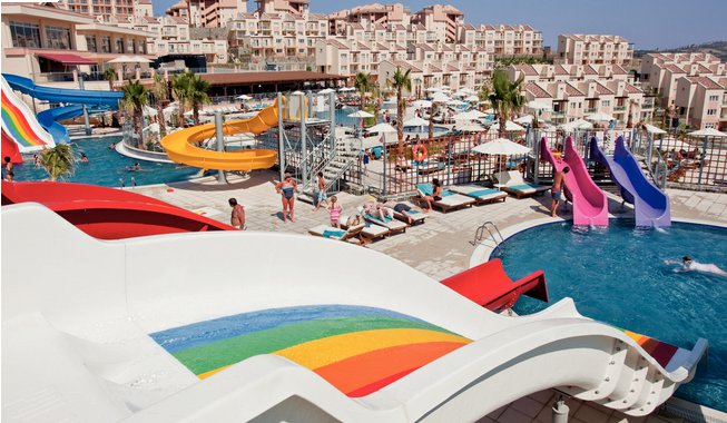 В хотела: комплекса предлага настаняване в 6 вида апартамента, от които Classicsuite– хол и спалня (мах. 3 човека), Juniorsuite- 2 спални и хол (мах. 5 човека), Superiorsuite– 2 спални, 2 бани и хол (мах.5 човека),ClassicPenthouseDuplexsuite -2 спални и хол (мах. 5 човека), Junior PenthouseDuplexsuite– 2 спални и хол (мах. 7 човека), Superior Penthouse Duplexsuite - 2 спални и хол (мах. 7 човека) ; На разположение на гостите са и основен ресторант, 4 а-ла-карт ресторанта, 7 бара, платен паркинг , салони за красота, търговси център с магазини, луксозен СПА център с турска баня, салони за релакс, фитнес център, зала за игри, интернет зала, 11 басейна, 8 детски басейна и аквапарк, 3 вътрешни басейна, голф игрище с 18 дупки, водни спортове на плажа, езеро с дистанционно управляеми лодки, 2 тенис корта, волейбол, баскетбол, миниголф, детски клуб и детска площадка, целодневна анимация, вечерни шоу програми, обменно бюро, туристическо бюро, помещение за съхранение на багаж, банкомат в хотела.